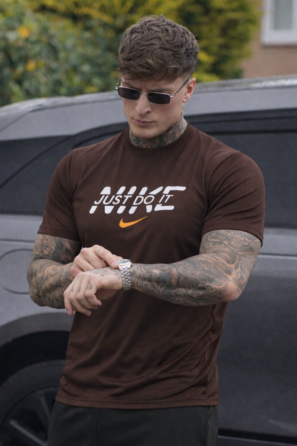 SMOOTH FLEX T-SHIRT WITH UNIQUE HALF SLEEVES DESIGN - BROWN