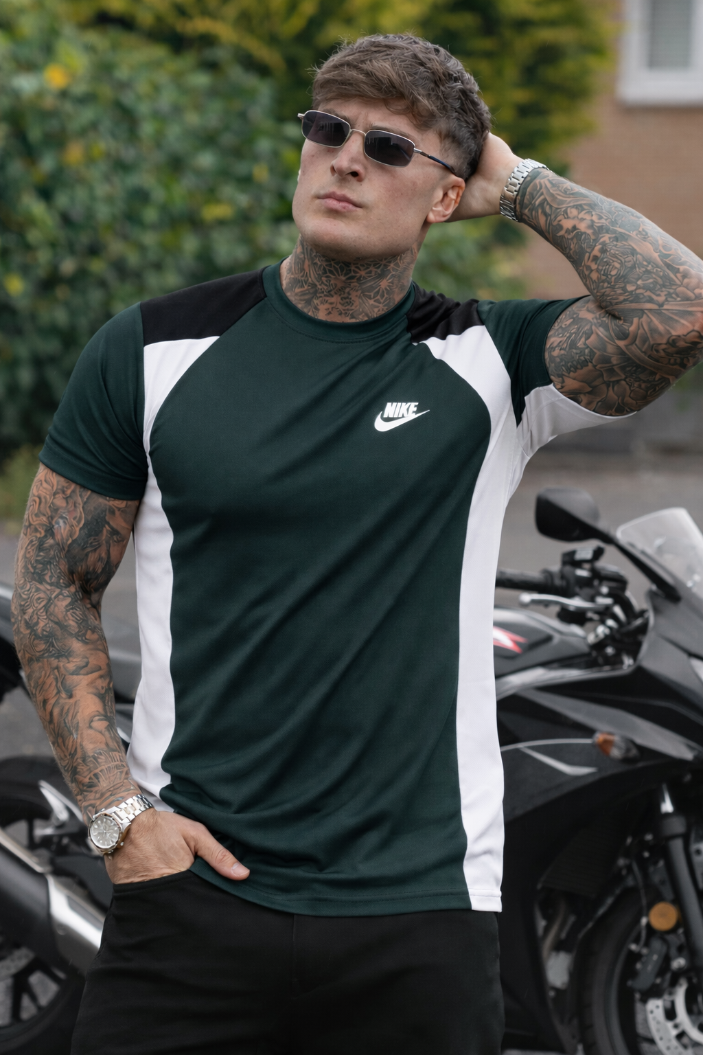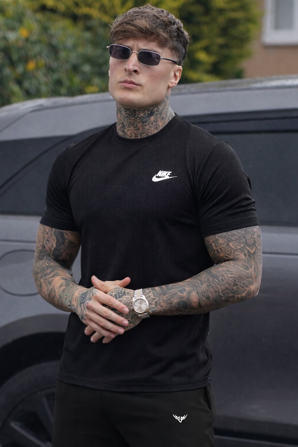 SMOOTH FLEX T-SHIRT WITH UNIQUE HALF SLEEVES DESIGN - BLACK